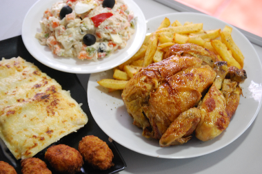 Prueba nuestro menú del dia elige entre un primero, un segundo y una bebida.